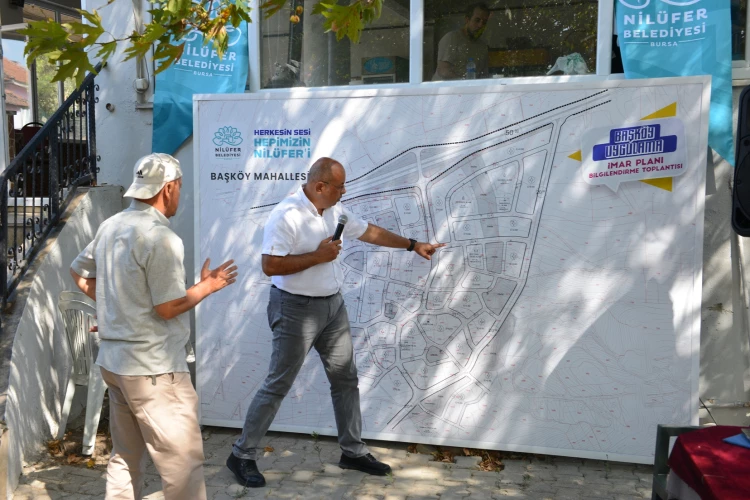 BURSA (İGFA) - Nilüfer Belediyesi, Başköy Mahallesi’nin geleceğini şekillendirecek olan Uygulama İmar Planı’nı, mahalle sakinlerine anlattı. Başköy Mahallesi’nde gerçekleşen toplantıya Nilüfer Belediye Başkan Yardımcısı Mahmut Demiröz, Başköy Mahalle Muhtarı Recep Uslu ve çok sayıda mahalle sakini katılarak planla ilgili detaylı bilgi aldı.