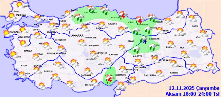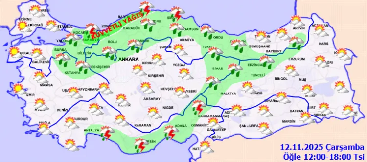 ANKARA (İGFA) - Meteoroloji Genel Müdürlüğü, 12 Kasım Çarşamba gününe ilişkin hava tahmin raporunu yayımladı.