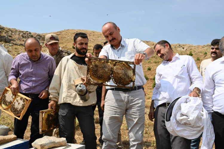 Batman Valisi Ekrem Canalp, organik bal üretiminin yapıldığı yaylada arıcılarla buluşarak üretim süreci hakkında bilgi aldı.