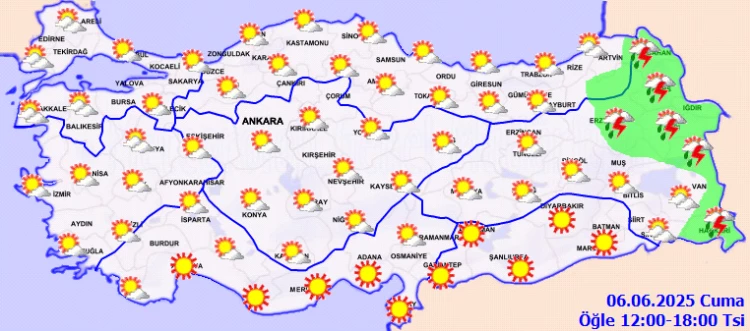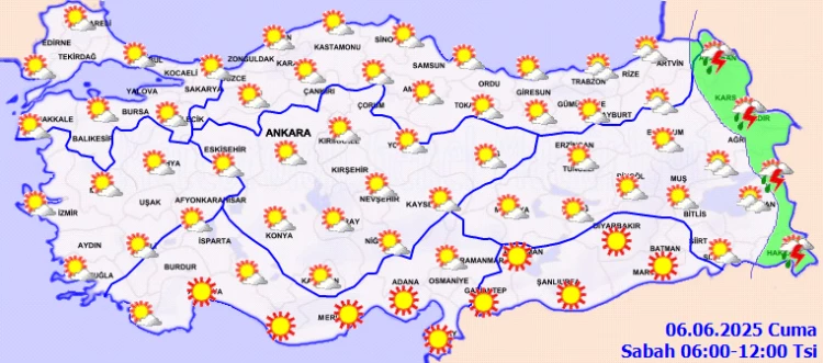 Buna göre Türkiye'nin doğu kesimlerinin parçalı yer yer çok bulutlu olacağı hava raporunda, Doğu Anadolu’nun doğusu, Artvin’in iç kesimleri ile bu akşam Edirne'nin kuzeyinin yerel olmak üzere sağanak ve gök gürültülü sağanak yağışlı, diğer yerlerin az bulutlu ve açık geçeceği tahmin ediliyor.