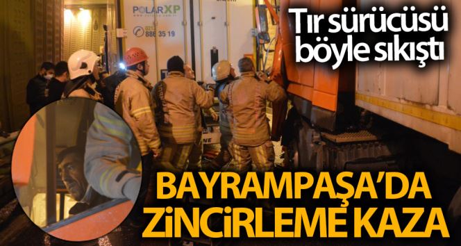 Bayrampaşa’da önünde meydana gelen kaza nedeniyle yavaşlayan tıra arkadan çarpan başka bir tır sürücüsü bulunduğu yerde sıkıştı. Bulunduğu yerde sıkışan sürücüyü itfaiye ekipleri uzun soluklu çalışmanın ardından çıkardı. Tır sürücüsü ambulans ile hastaneye kaldırıldı.