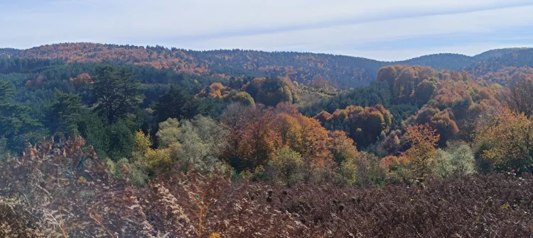 Bilecik’in doğa cenneti Pazaryeri ilçesi, sonbaharın gelişiyle birlikte adeta kartpostallık manzaralarla kaplandı. İlçeye bağlı Bozcaarmut köyü yakınlarındaki ormanlık alanlarda, kayın, çam ve meşe ağaçlarının renk değişimiyle oluşan büyüleyici manzara görenleri hayran bıraktı.
