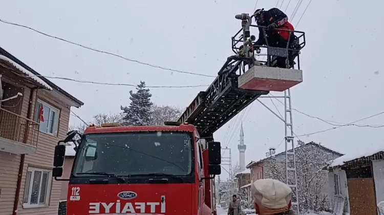 Bilecik'in Pazaryeri ilçesinde yoğun kar yağışı sırasında çatıda mahsur kalan yavru köpek, itfaiye ekiplerinin başarılı operasyonuyla güvenli şekilde indirildi.
