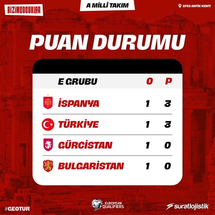 2026 FIFA Dünya Kupası Avrupa Elemeleri E Grubu ilk maçında deplasmanda Gürcistan'ı 3-2 mağlup etti.