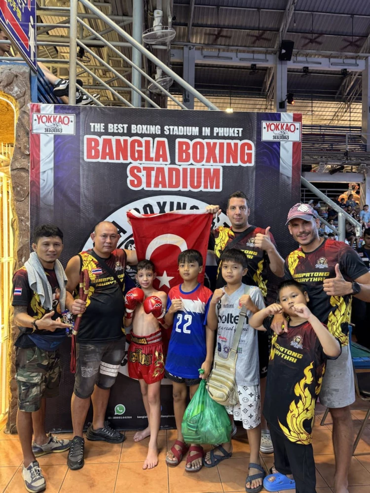 Bostanlıspor’un Tayland'ın Phuket Adası’nda 1 aylık kamp çalışmasına giden 10 yaşındaki muay thai sporcusu Mert Uyanıker, ringe çıktı ve Taylandlı rakibiyle berabere kaldı.