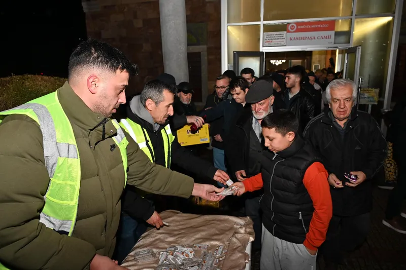İlçe genelindeki tüm camilerde yatsı namazı sonrasında dağıtılan cezerye ikramları, vatandaşlar tarafından yoğun ilgi gördü.
