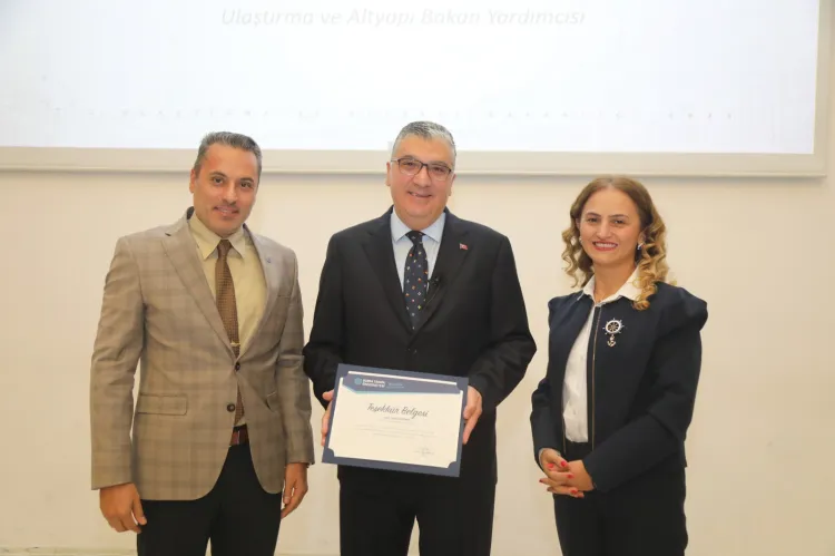Türkiye’nin uluslararası organizasyonların çoğunda yer aldığını ve başarılarını ispat etmeye devam ettiğini vurgulayan Durmuş Ünüvar, 50 farklı ülke ile imzalanmış 64 denizcilik anlaşmasının olduğunu anlattı. Türk limanlarının yükselişe devam ettiğini kaydeden Ünüvar, dünyanın en iyi 100 limanının 5’inin Türkiye’den olduğunu söyledi. Türkiye’nin 142 bin gemi insanı ile çalıştığını dile getiren Durmuş Ünüvar, çok daha iyilerini mezun olacak Denizcilik Fakültesi öğrencileri ile yapacaklarını kaydetti. Bakan Yardımcısı Ünüvar, mezun olacak öğrencilerin iş hayatında dikkat etmesi gereken hususları da aktararak konuşmasını sonlandırdı. Açılış dersinin ardından Denizcilik Fakültesi Dekanı Prof. Dr. Erinç Dobrucalı ve Denizcilik İşletmeleri Yönetimi Bölüm Başkanı Prof. Dr. Gökçe Çiçek Ceyhun, Ulaştırma ve Altyapı Bakan Yardımcısı Durmuş Ünüvar’a teşekkür belgesi takdim etti. Açılış dersi, toplu fotoğraf çekimi ile son buldu.