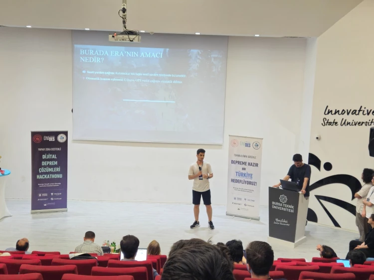 BURSA (İGFA) - Bursa'da Mimar Sinan Yerleşkesi’nde, Endüstri ve Dijital Dönüşüm Topluluğu tarafından organize edilen Dijital Deprem Çözümleri Hackathonu, Gençlik ve Spor Bakanlığı ÜNİDES desteğiyle hayata geçirildi. 11 farklı takımdan oluşan 40 üniversite öğrencisi, 32 saat boyunca aralıksız çalışarak afetlere yönelik dijital çözümler üretti. Etkinlik süresince öğrenciler; deprem öncesi hazırlık, anlık müdahale ve sonrası iyileştirme süreçlerine odaklanan yazılım projeleri geliştirdi. Yarışmada birinciliği, Bursa Uludağ Üniversitesi Yönetim Bilişim Sistemleri öğrencilerinden oluşan İHAWK Takımı kazandı. Deprem sonrası yıkım tespiti ve sektörleme yapabilen bir insansız hava aracı sistemi geliştiren takım; Merve Subaşı, Ömer Turhan, Mehmet Sahaf Bayrakçı, Mohamad Alchekh ve Besmullah Nikzada’dan oluştu.