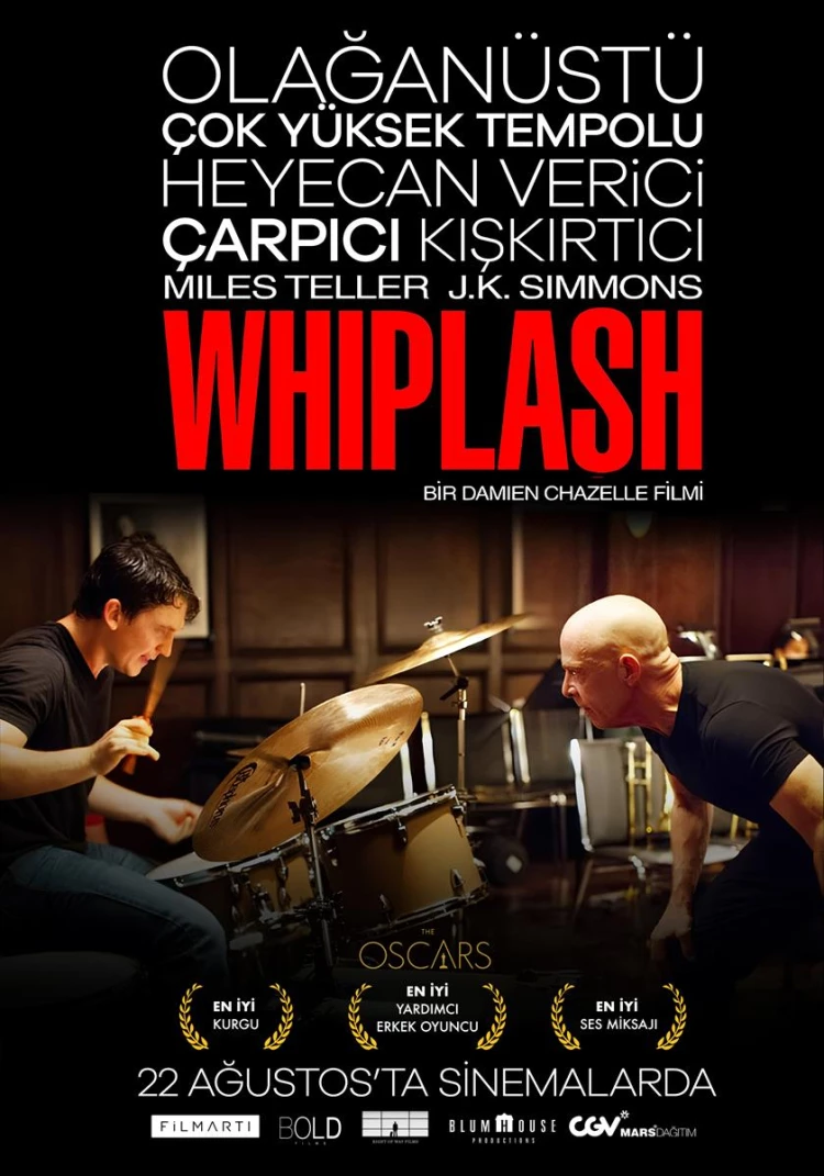 Damien Chazelle’in yönetmenliğini yaptığı, Miles Teller ve J.K. Simmons’ın başrollerinde yer aldığı Whiplash (Whiplash), ikinci kez vizyona giriyor. Hırslı bir genç davulcu ile acımasız müzik öğretmeni arasındaki tutkulu ve yıkıcı ilişkiyi anlatan film, müzik ve dramın sınırlarını zorlayan sahneleriyle öne çıkıyor. Yoğun temposu, unutulmaz finali ve Oscar ödüllü performansıyla Whiplash, yeniden izlenmesi gereken modern bir klasik.