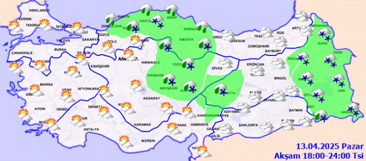 ANKARA (İGFA) - Meteoroloji Genel Müdürlüğü, 13 Nisan Pazar gününe ilişkin günlük hava tahmin raporunu yayımladı.