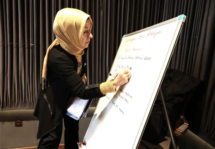 Şiiri bir hobi olarak gören, fakat içindeki şairi ortaya çıkarmak isteyen amatörlere yönelik düzenlenen ‘Şiir Yazma Teknikleri ve Analizi’ atölyesi, katılımcıları şiirin büyülü dünyasına çıkarttı. Şiire ilgi duyan sanatseverler, düzenlenen bu anlamlı atölyeye büyük bir heyecanla katıldı. Gençlik ve Girişimcilik Merkezi’nde gerçekleştirilen çalışmalarda Kültür Bakanlığı Halk Şairi ve Yazarı Eğitmen Hatice Türkmen Yurtseven, katılımcıları şiirin tarihsel yolculuğundan türlerine, ölçüsünden kafiyesine kadar geniş bir bilgi dünyasıyla buluşturdu.