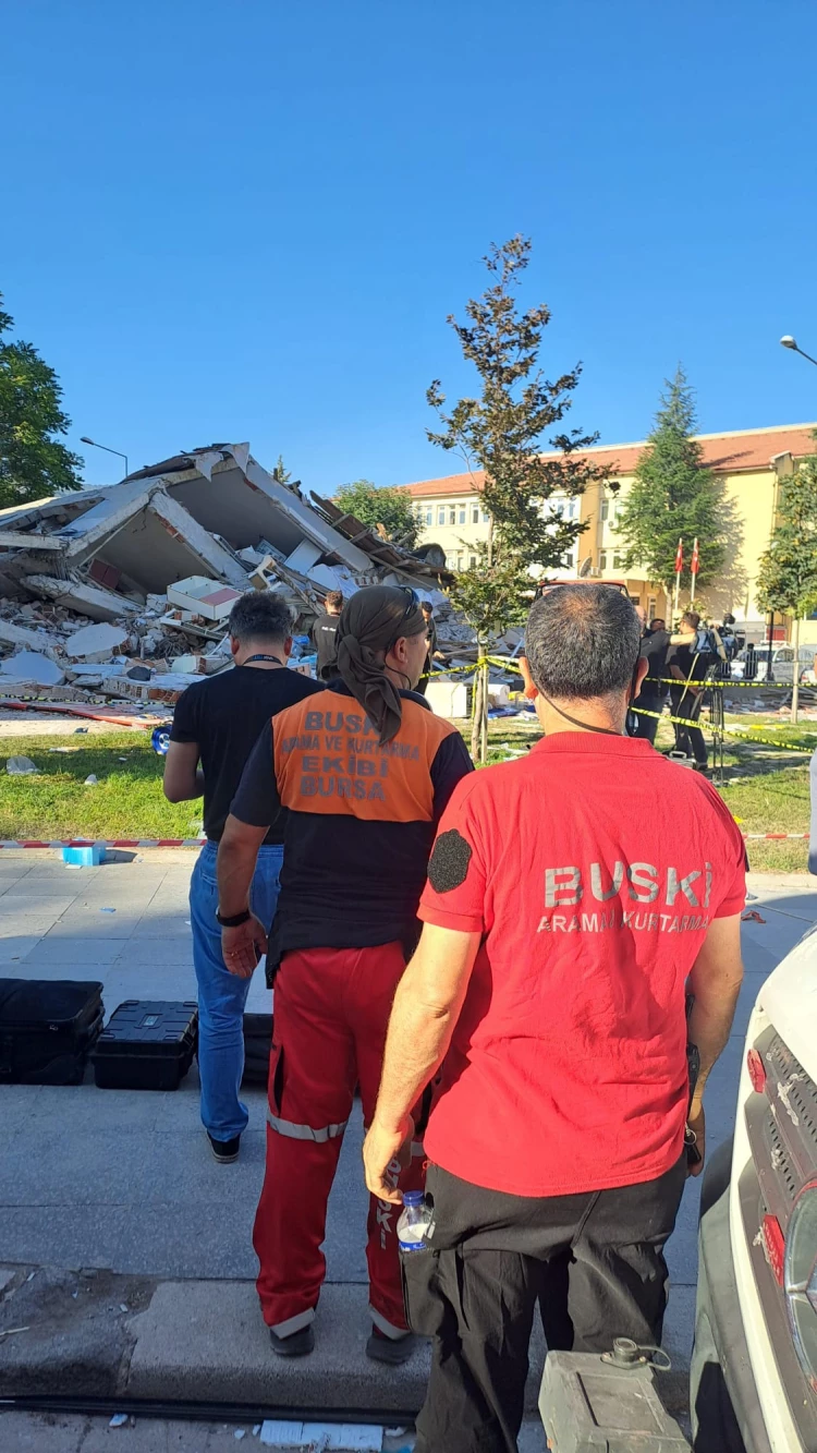 AFAD koordinasyonunda bölgeye giden ekipler, yıkılan binanın enkazından vatandaşları kurtarmak için mücadele etti. Bursa Büyükşehir itfaiyesi ve BUSKİ arama kurtarma ekibinden oluşan toplam 22 personel ve 5 araçla bölgedeki çalışmalara destek olundu. BURFAŞ da deprem bölgesinde çorba, su ve çay dağıtımı yaparak halkın yemek ihtiyaçlarını karşıladı.