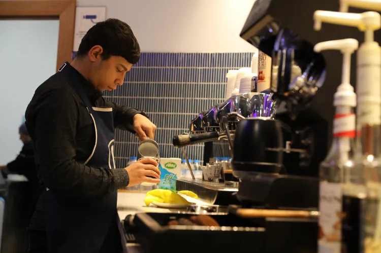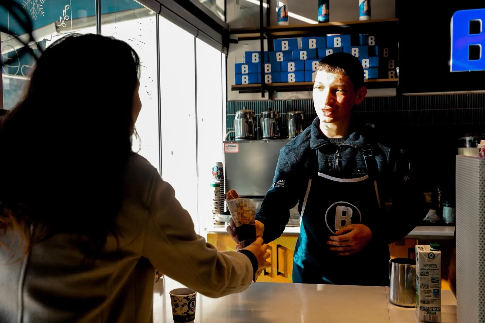 Merinos Parkı’ndaki BURFAŞ B Kafe’de stajyer barista olarak görev yapan 16 yaşındaki Ümit Hazar, barista önlüğünü giyerek personelle birlikte siparişleri titizlikle hazırlıyor. B Kafe’de staj yapmaktan mutluluk duyduğunu söyleyen Hazar, kafeye gelen vatandaşlardan da büyük takdir topluyor.