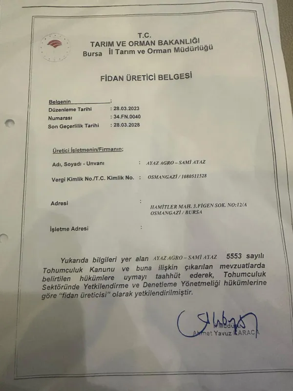 Külcü’nün açıklamalarına göre fFide alımında kullanılan “Fidan Üreticisi Belgesi”nin sahte olduğu,