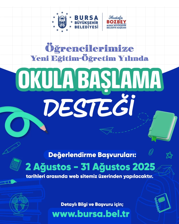 BURSA (İGFA) - Bursa Büyükşehir Belediyesi, yeni eğitim-öğretim yılı öncesinde ilkokul, ortaokul ve lise öğrencileri için verilecek ‘Kırtasiye ve Eğitim Desteği’ne başvurular başladı.