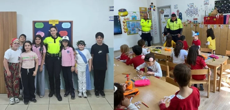 Trafik ekipleri tarafından gerçekleştirilen interaktif sunumlar ve uygulamalı eğitimlerle çocukların trafik konusunda bilinçlenmeleri hedeflendi.