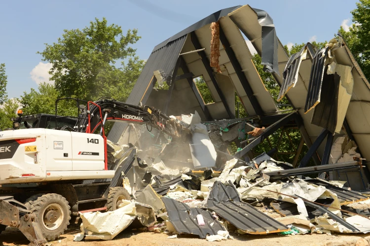 Bursa'da Nilüfer Belediyesi, Hasanağa Mahallesi’nde kaçak olarak inşa edilen iki villayı müştemilatlarıyla birlikte yıktı.