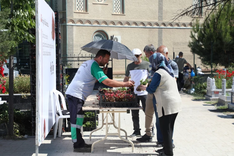 Bursa İnegöl Belediyesi, Kurban Bayramı arifesinde mezarlık ziyareti yapan vatandaşlara 6 mezarlıkta 9 bin adet çiçek dağıtımı yaptı. Dağıtılan çiçekler vatandaşlar tarafından mezarlıklara ekildi.