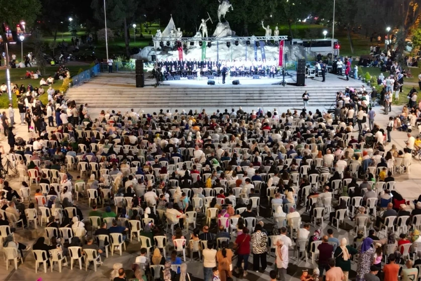 Bursa İnegöl Belediyesi Türk Sanat Müziği Korosu, heykelde düzenlenen konserde kulakların pasını sildi. Koro ve solo eserlerle İnegöllüler sanat dolu bir gece yaşadı.