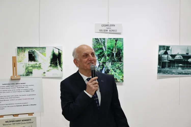 Nilüfer Kent Konseyi Kent Kültürü Çalışma Grubu Başkanı Kenan Yetişen de, 700 yıllık süreçte gelişen çeşme kültürünü anlatmak için Bursa’nın dört bir yanından fotoğraf topladıklarını ifade etti. Çeşmelerin eski ve yeni hallerini karşılaştırmalı olarak sunduklarını belirten Yetişen, Bursa’daki su mimarisinin diğer kentlerden ayrılan üç temel özelliğine dikkat çekti. Bu özelliklerin ilkinin, çeşmelerin coğrafyaya göre şehir merkezinde çınar, dağ yöresinde meşe, deniz kenarında ise zeytin ağaçlarının dibine konumlandırılması olduğunu belirten Yetişen; ikinci özelliğin ise camilerin içerisine estetik çeşmelerin entegre edilmesi ve bu geleneğin yaşatılması olduğunu vurguladı. Yetişen son olarak, çeşmelerin sokak köşelerinde, mezarlıklarda, apartman girişlerinde bir rozet gibi kullanılması ve hatta ova köylerinde evlerin odalarına kadar taşınmasının kentin gündelik hayata entegre mimarisindeki önemine değindi.