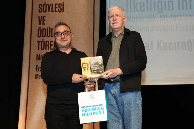 BURSA (İGFA) - Bursa Nilüfer Belediyesi’nin, şiir eleştirmenlerinin adını yaşatmak ve Türkçe’de yayımlanan şiir eleştirisi kitaplarını görünür kılmak amacıyla gerçekleştirdiği Mehmet H. Doğan Ödül Töreni ve Sesli Şiir Antolojisi programı Nazım Hikmet Kültürevi’nde düzenlendi.