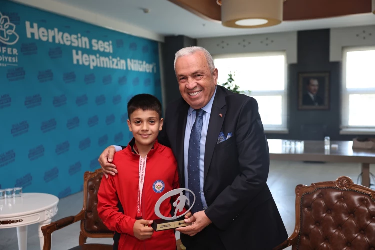 BURSA (İGFA) - U11 Minik Erkekler Yerel Ligi 2024-2025 sezonunda 14 maçın 13’ünü kazanarak, Bursa 2’ncisi olan Nilüfer Belediyespor oyuncuları ve teknik ekibi, Nilüfer Belediye Başkanı Şadi Özdemir’i ziyaret etti. Nilüfer Belediyesi Halk Evi Başkanlık Makamı’nda gerçekleşen ziyarette sporcular ve teknik ekibin yanı sıra Nilüfer Belediyespor Başkanı Muharrem Or, Asbaşkan İlker Mehmet Şener, baş antrenör Erdem Kaçmaz, yardımcı antrenör Arda Çitoğlu, kulüp yöneticileri ve veliler de yer aldı.