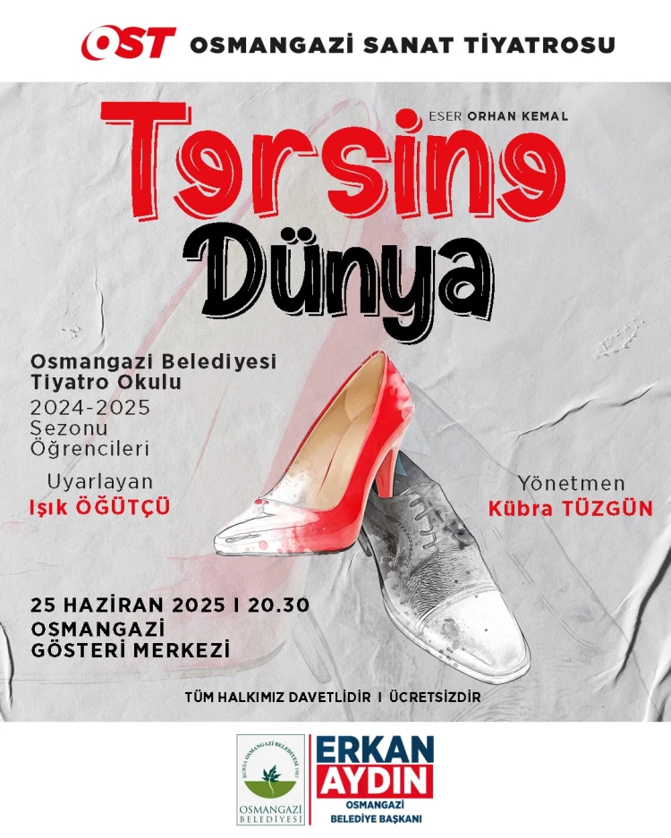 Bursa Osmangazi Belediyesi Tiyatro Okulu 2024-2025 sezonu öğrencileri, Orhan Kemal’in çarpıcı eseri ‘Tersine Dünya’ ile izleyiciyi karşısına çıkacak.