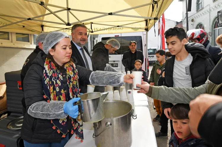 Bursa'da Osmangazi Belediyesi tarafından Alemdar Camii’nde düzenlenen cuma programında, namazın ardından vatandaşlara sıcak çorba ikram edildi.