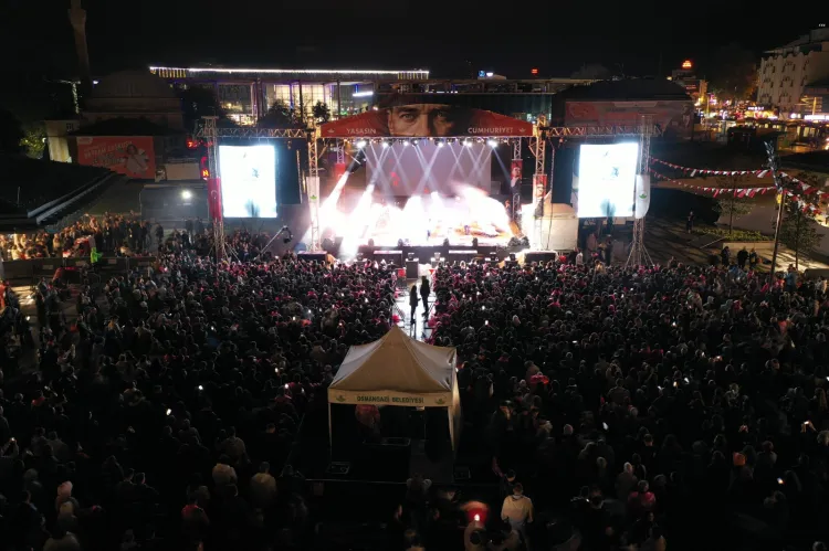 Bursa'da Osmangazi Belediyesi, 29 Ekim Cumhuriyet Bayramı kutlamaları kapsamında muhteşem bir konsere ev sahipliği yaptı. Osmangazi Meydanı’nda düzenlenen konserde sahne alan Zeynep Bastık, yağmura rağmen seslendirdiği şarkılarla Bursalıların içini ısıttı.
