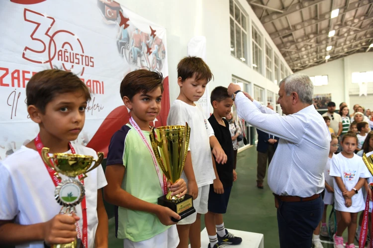 Bursa'da Osmangazi Belediyesi, Gençlik Hizmetleri Spor İl Müdürlüğü ve Tenis Federasyonu Bursa İl Temsilciliği işbirliğinde düzenlenen 3 gün boyunca devam eden 30 Ağustos Zafer Bayramı Tenis Turnuvası’nda dereceye giren sporcular düzenlenen törenle ödüllendirildi.