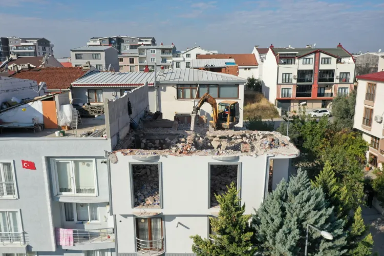 BURSA (İGFA) - Bursa Osmangazi Belediyesi Yapı Kontrol Müdürlüğü tarafından yürütülen denetimler kapsamında Güneştepe Mahallesi 696’ncı Sokak’ta bulunan bir binada ruhsata aykırı inşaat yapıldığı tespit edildi. İncelemeler sonucunda mevcutta dört katlı olan yapıya sonradan izinsiz olarak iki kat eklendiği belirlendi. Kaçak yapılaşmanın önüne geçmek ve kentte düzenli yapılaşmayı korumak için harekete geçen ekipler, yasal sürecin tamamlanmasının ardından gerekli güvenlik önlemleri alarak yıkım işlemini gerçekleştirdi. Osmangazi Belediyesi Zabıta Müdürlüğü’nün de destek verdiği çalışmalar, çevrede herhangi bir olumsuzluk yaşanmadan koordineli bir şekilde sona erdi.