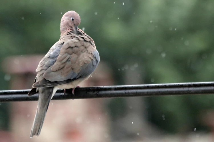 Elektrik tellerine konan gugukçuklar, serin havayla birlikte gelen yağmurun keyfini çıkardı.