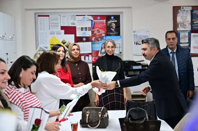 Çiçek verdiği Gürkan Gökbudak’ın öğretmenler gününü kutlayan Başkan Yılmaz, öğrencilerle de keyifli bir sohbet gerçekleştirdi. Ardından öğretmenler odasını ziyaret eden Başkan Oktay Yılmaz, bir araya geldiği öğretmenlere çiçek ve hediye vererek, öğretmenler gününü kutladı.