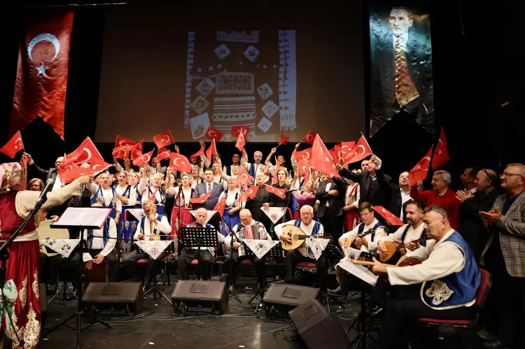 Gecede sahne alan Hafize Beysim Gün Korosu, Ulu Önder Gazi Mustafa Kemal Atatürk’ün sevdiği Rumeli ve Balkan türkülerini seslendirerek dinleyenlere duygusal anlar yaşattı. Gecenin sonunda sahneye çıkarak bağlama çalan Başkan Mustafa Bozbey, salonu dolduranlara büyük sürpriz yaşattı. Koroyla birlikte ‘Yeşil Ördek’ türküsünü de seslendiren Başkan Mustafa Bozbey, dinleyenlerden büyük alkış aldı.