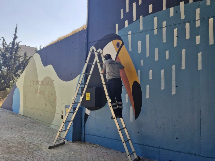 Trafo binaları, istinat duvarları ve köprülü kavşakları tuval gibi kullanan Büyükşehir Belediyesi ekipleri, cadde ve sokakları sanatla buluşturuyor.