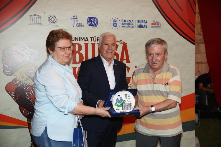 Karagöz’ün Bursa’nın mizahını ve halk dilini, Hacivat’ın ise zarafet ve aklı temsil ettiğini vurgulayan Başkan Bozbey, Bursa'nın dünyaya armağan ettiği eşsiz bir miras olduğunu belirterek, Karagöz sanatına katkılarından dolayı Şinasi Çelikkol ve Ünver Oral’a Bursa Miras Yaşam Boyu Başarı Ödülü takdim etti.