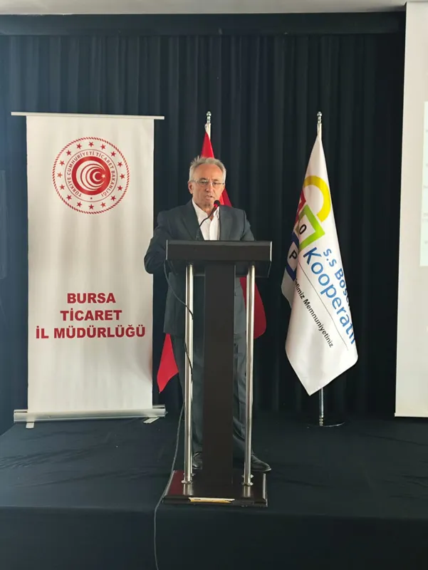 Etkinlikte Bosch Çalışanları Tüketim Kooperatifi Başkanı İsmail Kaya, tüketim kooperatiflerinin işleyişi ve faaliyetlerine dair bilgiler aktardı.