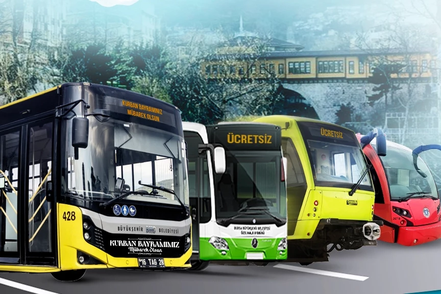 Bursa Büyükşehir Belediyesi, 6-9 Haziran tarihleri arasındaki Kurban Bayramı boyunca BursaRay, tramvay ve tüm otobüslerin ücretsiz olacağını açıkladı.