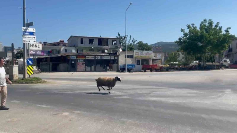 Bursa’nın İznik ilçesinde kurbanlık koç kesileceği anda vatandaşların ellerinde kaçtı. Birden ana caddeye çıkan koçun o anları kameraya yansıdı.