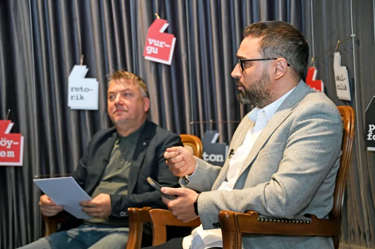 BURSA (İGFA) - Sevda Kurul’un moderatörlüğünde gerçekleşen söyleşide, Bursalı gazeteciler Okan Tuna ve Yaman Kaya, Bursa ve ülke gündemine dair önemli konuları konuşarak katılımcılara bilgiler verdi. Günümüz Türkiye’sinde insanların kitle iletişim araçlarından çok fazla etkilendiğini belirten usta kalemler düzenlenen söyleşide iyi ve kötü üslubun nelere yol açabileceğini örnekleriyle birlikte anlattı.