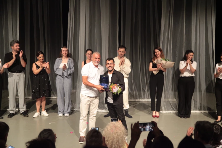 Daha sona oyunun yönetmeni Mehmet Ali Dönmez’e plaket takdim eden İrman, bu süreçte sahneye emek veren tüm oyunculara, ekibe ve destek olan izleyicilere teşekkür etti.