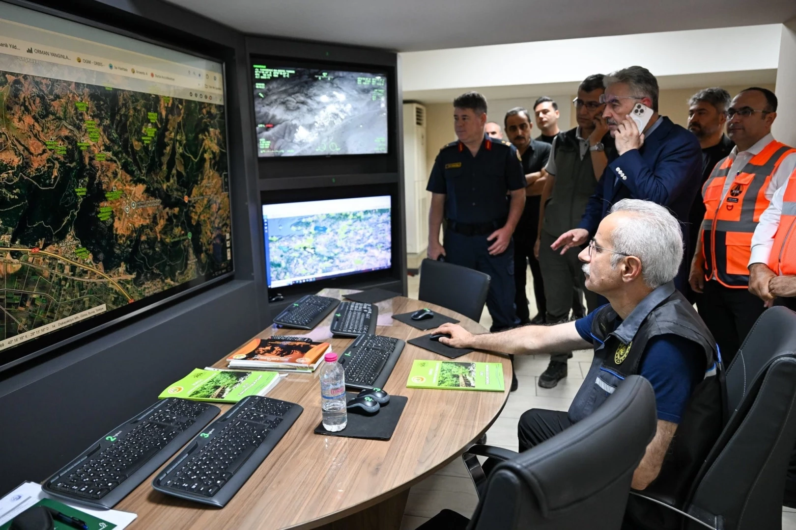 Bursa'da bulunan Ulaştırma ve Altyapı Bakanı Abdulkadir Uraloğlu, Bursa Valisi Erol Ayyıldız ile birlikte Yangın Harekât Merkezi’nde Orman Bölge Müdürü Erdal Şahan’dan bilgi aldı.