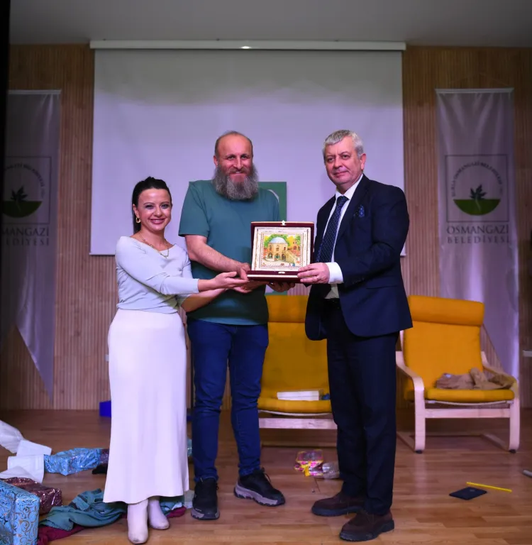 Etkinliğin sonunda Osmangazi Belediye Başkan Yardımcısı Mutlu Esendemir, Çetin Altay ve Özlem Karaaytu’ya emeklerinden dolayı teşekkür plaketi takdiminde bulundu.