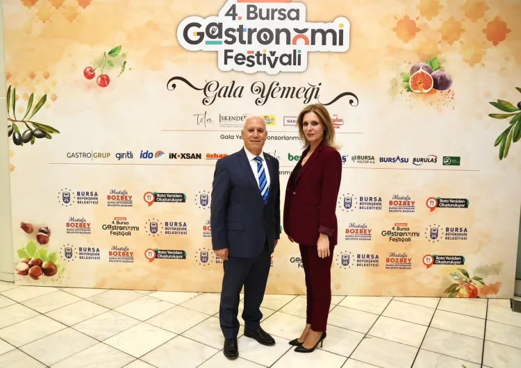 BURSA (İGFA) - Bursa’nın zengin ve köklü mutfak kültürünü dünyaya duyurmak ve gastronomi turizminden hak ettiği payı alabilmesini sağlamak amacıyla Büyükşehir Belediyesi tarafından hazırlanan 4. Bursa Uluslararası Gastronomi Festivali, şehir içinden ve şehir dışından gelen lezzet tutkunlarının yoğun ilgisiyle sürüyor. Bursa Büyükşehir Belediye Başkanı Mustafa Bozbey de eşi Seden Bozbey ile birlikte gala yemeğinde sektör paydaşlarıyla buluştu.