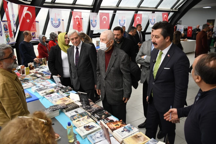 Başkan Ercan Özel, daha sonra Kitap Fuarına katılan yazarlara plaket takdim etti.