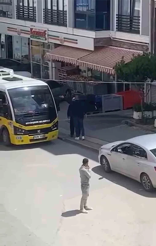 Bursa’da minibüs ile otomobil sürücüsü arasında yol verme kavgası cep telefon kamerasına yansıdı.