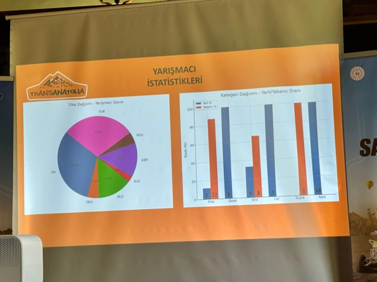 Bahsettim yarıştan rotanızdan ama birazcık güzergahlardan bahsedersem, yaklaşık her gün 250 kilometrenin üstünde bir yol yapacak yarışmacılar. Bunun büyük bir kısmı özel etap, arada da normal bağlantı yollarımız olacak. İşte birinci gün 260 kilometreye yakın, en uzun günde de 432 kilometre yol yapacaklar Haymana'dan Kapadokya'ya. Şöyle düşünün, bu yolun çoğunluğunu arazide düşünürseniz gayet zorlu ve dayanıklılık isteyen bir yarış. Transferin burada en büyük amacı tabii ki spor turizmini değerlendirmek ve göstermek. Bizim en büyük destekçilerimiz tabii ki Spor Bakanlığı ve Türkiye Otomobil Sporları Federasyonu. Türkiye Otomobil Sporları Federasyonu il temsilcisi Mithat Bey de bizle beraber, bizi kırmadan geldi. Çok teşekkür ediyoruz. İkincisi Turizm Bakanlığı, çünkü Turizm Bakanlığı spor turizminin önemini çok iyi kavramış durumda son dönemlerde. Bu tür sportif aktivitelerin turizme katkısını beraber değerlendiriyoruz. Buradaki komisyonu yurt dışında yayınlamak için özel bir çalışmamız var. Neden önemli? Start Bursa'da ve Bursa'da insanlar çok vakit geçirecekler ve Bursa'yı da yabancı sporculara tanıtma imkanımız olacak. Sizler de bu start günü özellikle sporcularla birebir ilişki kurup röportajlar yapma imkanına sahip olacaksınız. Bunu şöyle çok önemli buluyorum açıkçası. Biz dünyada her yere gidip Türkiye tanıtımları yapıyoruz ama şunu fark ediyoruz: Hala Türkiye'yi tanımıyorlar. Yani artık bu dijital medyanın bu kadar kuvvetli olduğu, sosyal medyanın bu kadar kuvvetli olduğu bir dönemde, Türkiye'nin hala az tanınıyor olmasına çok şaşıyorum. Yaptığımızın %60'ı yarışla alakalı değil, Türkiye ile alakalı sorular üstüne geçiyor. Burada kendimizi bir turizm olarak görüyoruz ve hep Türkiye'deki bu güzellikleri anlatmak istiyoruz. Çünkü Türkiye gerçekten bence motor sporları için, özellikle ralli tarzı yarışlar için efsane bir coğrafyaya sahip. Yani, çünkü dünyadaki ilk beş yarıştan biri şu an zorluk ve uzunluk açısından baktığınızda. Diğer yarışlara baktığınızda %80'i çöllerde geçiyor. Yani ya pasta yapılıyor ya Suudi Arabistan'da yapılıyor ve özünde hep bir çöl var. Halbuki Türkiye'de bir gün Tuz Gölü'nden geçiyorsunuz, bir gün 2.500 metre ormana çıkıyorsunuz, deniz seviyesine iniyorsunuz. Yani coğrafyası o kadar güzel ki ülkemizin, hepimizin diyoruz ama bunu gösterme fırsatımız oluyor. Çünkü normalde insanların yolunun düşmeyeceği yerlerden geçiyor Trans Anatolia. Yani bizim bir etabımızda birinin gitmesi için uçaktan inip araba kiralayıp 100 kilometre yol yapması lazım. Biz bunu yaklaşık bu senede 600 kişilik bir ekip olacak; transfer, bu 600 kişiyi beraber taşıyor olacağız.” dedi.