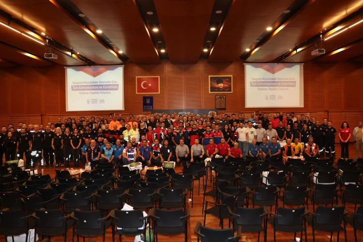 Bursa Büyükşehir Belediye Başkanı Mustafa Bozbey, geçtiğimiz haftalarda yaşanan orman yangınlarının söndürülmesinde gece gündüz çalışan itfaiye, AFAD, sivil toplum kuruluşları, dernekler, firmalar, moto kuryeler ve vatandaşlara teşekkür belgesi takdim etti. Bozbey, gönüllü itfaiyeciliğin geliştirilmesi gerektiğini vurguladı.