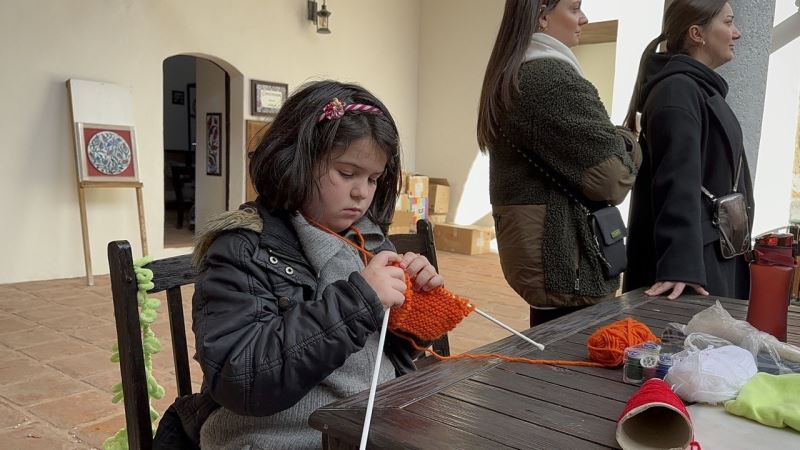Bursa’nın İznik ilçesinde bir araya gelen evhanımları depremzede çocuklar için kışlık atkı, bere, eldiven ve battaniye örmeye başladı.