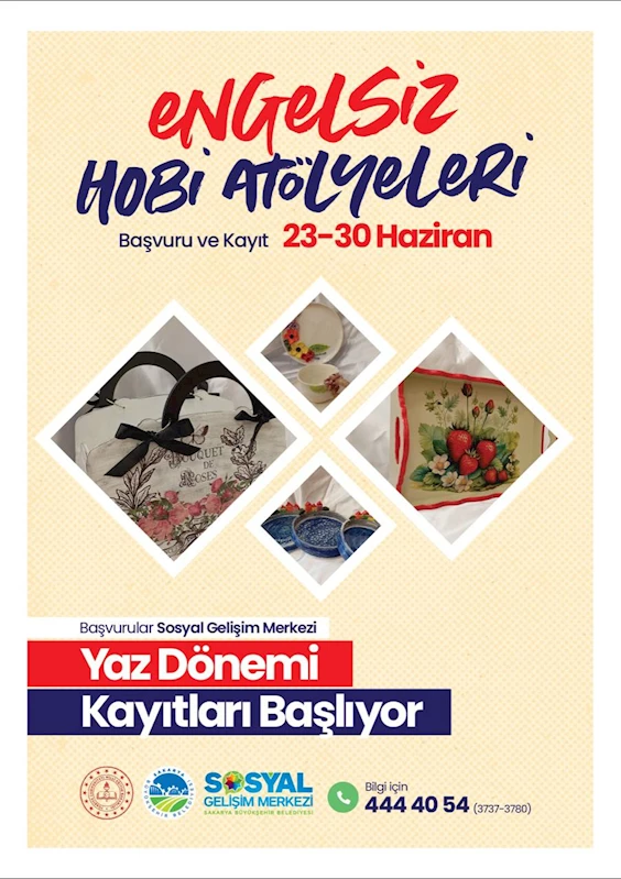 Eğitici ve keyifli bir yaz dönemi hedefiyle planlanan Engelsiz Hobi Atölyeleri hakkında detaylı bilgi ve kayıt için Sosyal Gelişim Merkezi’ne ve 444 40 54 (Dahili: 3737 - 3780) nolu telefondan başvurulabilecek.